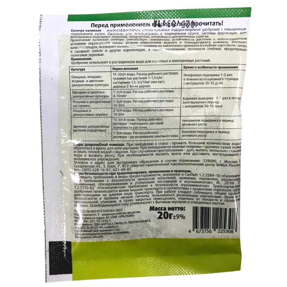 Назначение: используется в качестве водорастворимого азотно-калийного удобрения с микроэлементами для корневых и некорневых подкормок всех сельскохозяйственных культур. Используется для активного роста и развития овощных, декоративных, плодовых, ягодных, горшечных культур.