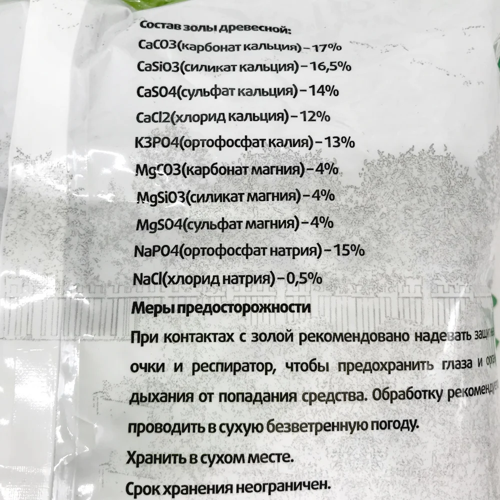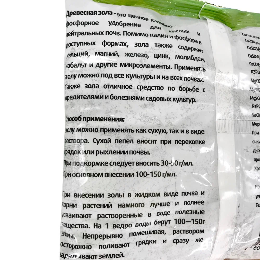 Древесная зола Садовита- является прекрасным универсальным органическим удобрением и природным средством защиты от вредителей и болезней. Этот продукт сжигания древесины лиственных пород, используется для всех видов овощных, плодовых и декоративных растений и цветов, так же для огорода и сада. Зола является сложным калийно- фосфорно- известковым комплексом с микроэлементами. Применяется для питания растений, известкования кислых почв, также применяется как добавка в питательных грунтах для выращивания цветочной рассады. Содержит в своем составе более 10 видов необходимых растениям элементов. Удобряет и раскисляет почву, создает благоприятные условия для жизнедеятельности почвенных микроорганизмов, в особенности азотфиксирующих бактерий. Внесение в почву золы повышает выносливость растений, они легче переносят посадку и пересадку, меньше болеют. Применение: Лучший результат дает совместное использование корневых (полив) и внекорневых подкормок (опрыскивание листьев раствором удобрения). Корневая подкормка: Отмерьте 1/2 колпачка (10 мл) и разведите в 1 л воды. Норма расхода раствора – как при обычном поливе. Минимально действующая удобрительная концентрация рабочего раствора 5 мл на 2 л воды. Периодичность подкормок: Март - октябрь: один раз в 7 дней. Ноябрь - февраль: один раз в месяц.Пересаженные растения подкармливать не ранее, чем через 7-14 дней. Нельзя подкармливать больные растения, если только это болезненное состояние не связано с недостатком питательных веществ. Удобрение не боится заморозки: после размораживания, удобрение не теряет своих свойств.